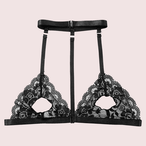 Ignite your allure with the Midnight Temptation Sheer Lace Bralette ✨💃 Crafted from delicate sheer lace 🌹 this open bralette highlights your curves 💖 and adds a bold seductive touch 😘