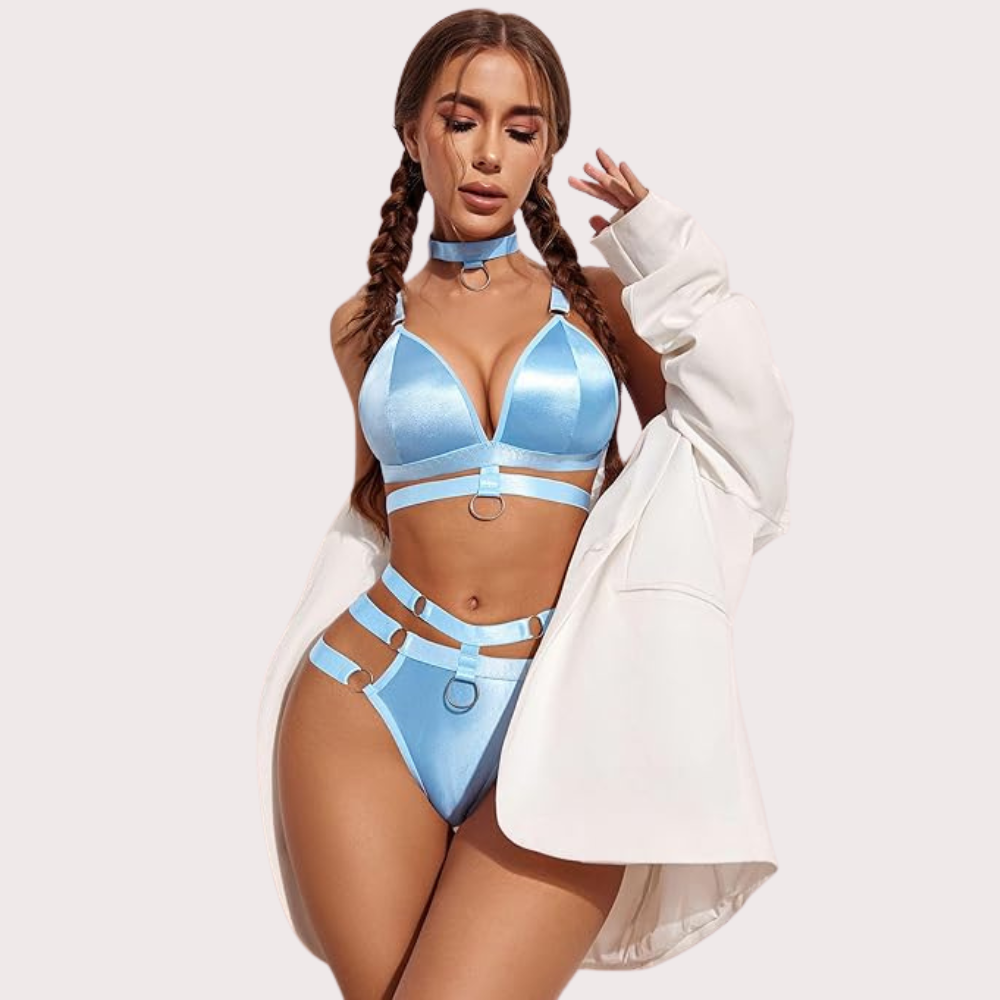 Seductive Leather Bra set – A The Strappy Leather Bra Set blends bold straps and sleek leather for a daring look.